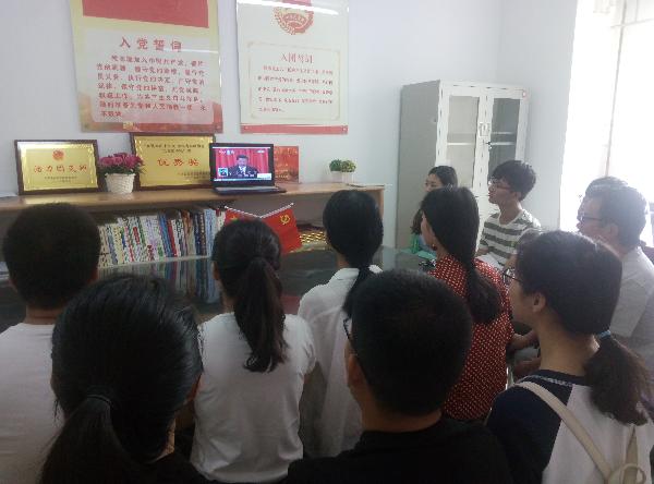 系学生党、团员认真收看了纪念马克思诞辰200周年大会