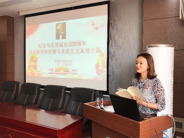 全系教工党员在系报告厅收看纪念马克思诞辰200周年大会