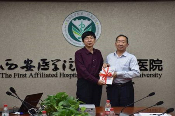 李亚军院长首先代表医院对钟家强院长一行的到来表示欢迎,并就医院发展历程、医院文化建设及开展精细化管理与“5+1”S精益管理、实施学科建设与人才发展战略所取得的成效向来宾做了简要介绍。近年来,一附院借助大学附属医院的发展平台,制定“强内涵、精管理、做暖医,创建一流人文品牌医院”的总目标,通过创新发展理念,实施人才强院战略,推进精细化管理,推动医疗、教学、科研和管理步入了迅猛发展的快轨道,实现数次跨越,在最新一期医院排行榜中,一附院综合实力已跃升西北20强。李亚军院长介绍,目前医院正在进行JCI国际认证,这是医院管理、服务与质量最高水平的评价体系,也是与现代医院管理制度一脉相承的,符合国家持续深化医药卫生体制改革的要求。通过进行JCI认证,全院职工将把“以病人为中心”的质量与安全文化内化于心,外化于心,助力推进医院各项事业上升一个新的台阶,实现新的跨越。