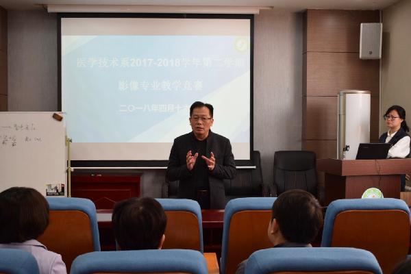 医学技术系为进一步促进影像专业青年教师教学质量和教学水平的不断提高,备战全国医学影像专业发展高峰论坛暨第二届全国医学影像专业青年教师基本功竞赛,医学技术系于2018年4月16日举办2017-2018学年第二学期影像专业青年教师教学竞赛。应邀担任竞赛评委的有:校级教学督导曹励民教授、系主任孙静副教授、影像专业负责人段云燕副教授、检验专业负责人李海燕副教授、医学免疫与病原教研室主任武永红副教授、医学影像技术教研室主任杨旭老师、物理教研室主任王成老师。本次竞赛由医学技术系教学科科长韩文霞副教授主持。