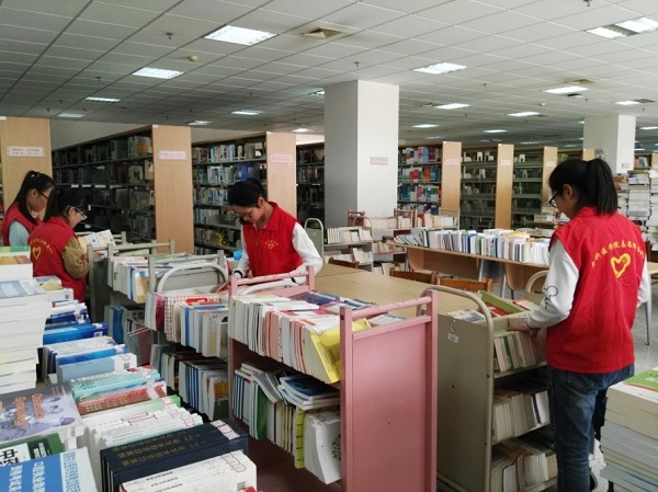 馆藏调整是一项强度较大又繁琐的工作,该项工作以借阅室工作人员为主,同时得到校团委派出的青年志愿者服务队的有力的支持。从3月26日起,来自我校各院系青年志愿者服务队,每天上下午各用一个半小时到图书馆借阅室协助调库,在老师们的悉心指导下,同学们认真有序的对图书进行分类、整理、上架。