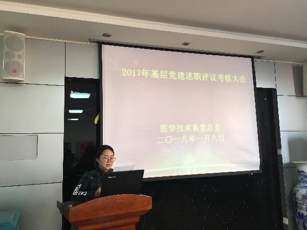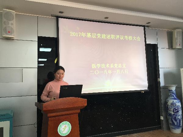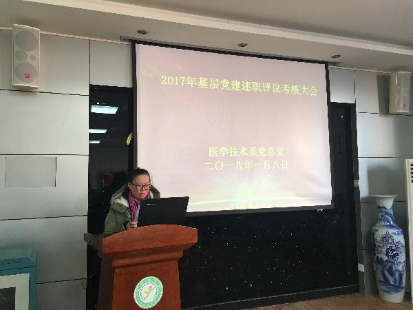 2018年1月8日,医学技术系党总支召开2017年度基层党建述职评议考核大会。全体党员参加了本次会议,会议由党总支副书记耿潇潇主持。