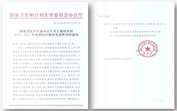 一元复始万象新,四誉踏雪喜临门。1月4日,国家卫生计生委通报表扬了2015-2017年全国改善医疗服务先进典型,我校一附院荣获全国改善医疗服务优秀示范医院,急诊科荣获全国改善医疗服务优秀示范科室,第一附属医院李亚军院长荣获全国改善医疗服务两项主题的先进个人。