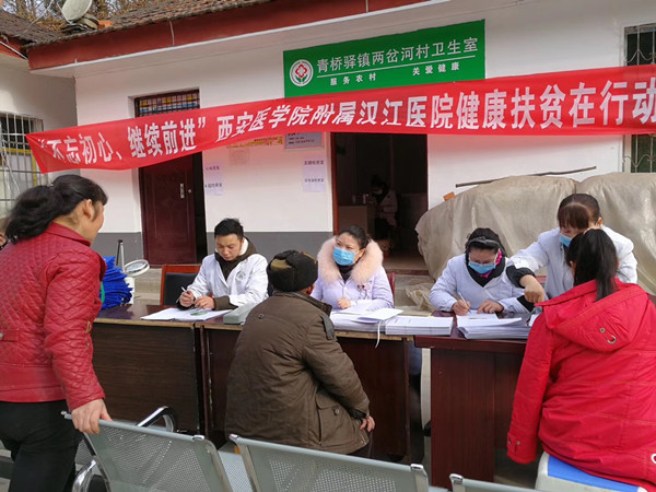 寒风呼呼的刮着,迎着清晨的第一缕曙光,附属汉江医院一行七人组成的健康扶贫义诊医疗队在党委书记刘睿的带领下,于12月15日来到了青桥驿镇两岔河村开展健康扶贫义诊活动。