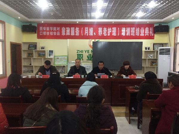 2017年12月13日下午2:30分在镇安县农民科技培训中心举行了“leyu·乐鱼(中国)体育官方网站在实施‘双百工程’中对口帮扶镇安县第二期月嫂暨养老护理培训班”结业典礼,镇安县社会劳动保障局、农民科技培训中心、微彦家政服务有限公司和我校继续教育学院等单位领导参加了结业典礼。