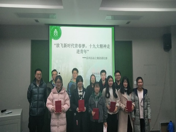 为进一步加强团员青年领悟十九大精神,充分了解各团支部十九大微课堂活动的展开情况,药学院团总支于2017年12月7日在药学院报告厅举办了以“放飞时代青春梦,十九大精神勇向前”为主题的微团课比赛。药学院2015、16、17级共派出20名团干部参加了本次比赛。