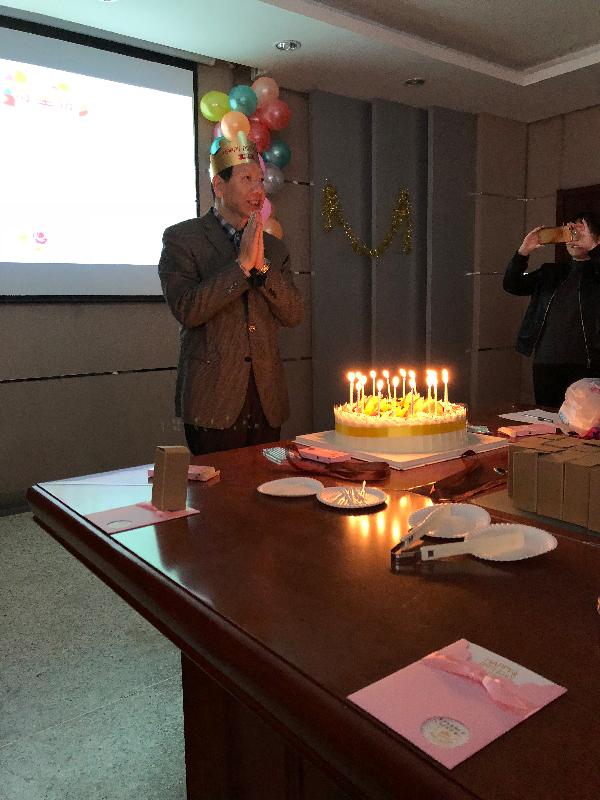 “老寿星”罗秀成主任作为代表也发言,他说:“人的一生大部分过生日是和家人度过的,我在工作岗位上工作了一辈子,这是第一次和这么多人一起过生日,很激动,很开心,也很感动。他代表全体寿星和教师们感谢分会为我们策划了这样一个难忘的生日联谊会。随后,全场一同唱起了生日快乐歌,寿星们一起许心愿、吹蜡烛、切蛋糕,将生日会的气氛推向了高潮。