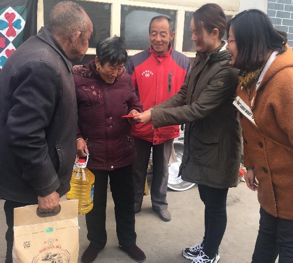耿潇潇副书记、孙静副主任为扶贫户送上过冬的粮食和慰问金