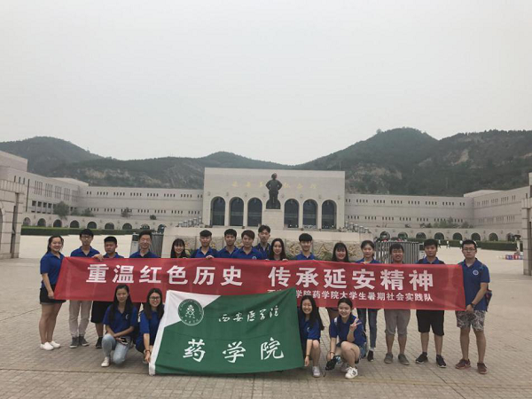 在药学院团总支书记杨娜老师和思政部王碧轩老师的带领下,由19位同学组成的暑期社会实践队于7月3日赴延安进行以 “重温红色历史,学习延安精神”的社会实践活动。在为期一周的暑期社会实践中,队员们参观了凤凰山革命旧址、中共中央西北局旧址、杨家岭革命旧址等,充分了解、学习了延安精神,深刻体会到幸福生活的来之不易,在革命纪念馆里,队员们仿佛身临那个战火纷飞的时代,感受到先辈浴血奋战的场景,每个队员们都收获了一份弥足珍贵的精神财富。