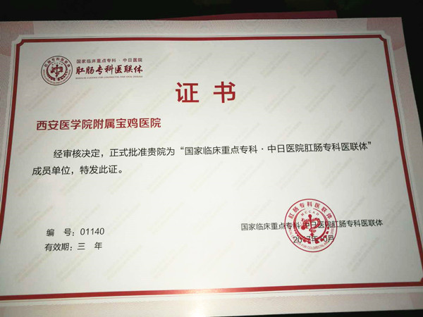 附属宝鸡医院获批加入中日医院肛肠专科医联体