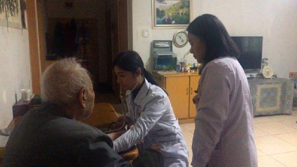 同时,王院长和服务队人员来到两位高龄离休干部家中,说明来访目的后,离休干部及其家属非常热情、非常感动,握住王院长的手激动的说到:“感谢党,感谢领导关怀,我一定好好保重身体”。做完常规检查后,他们相聚而坐唠唠家常、话话新闻,像是久别重逢的家人。
