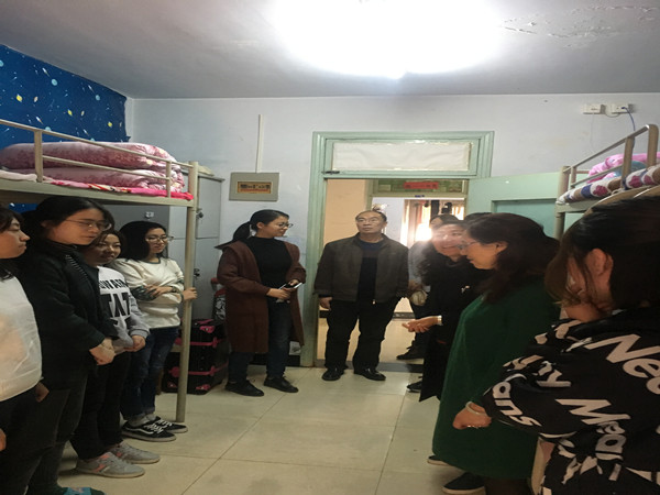 为进一步加强学生宿舍日常安全管理工作,丰富宿舍文化生活,为学生提供和营造一个安全、舒适、便利和有益身心健康发展的学习和生活环境,督促我系学生保持良好的宿舍卫生环境,2017年10月27日中午,英语系主任陈蓁、系党总支副书记陈旭华、副主任薛英利和系党政办、学生科的几位老师及系学生会权益部的同学们对我系学生宿舍安全卫生、寝室风貌等方面进行检查,并走访了辅导员工作室、学生党团活动室等。