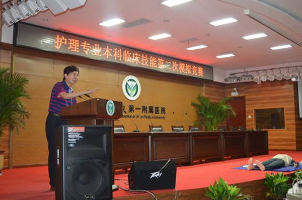 此次大赛虽为第二届,但我校为首次参赛,而一附院首次承担了本次护理专业本科临床技能大赛的培训任务。医院领导高度重视此次培训任务,成立了以李亚军院长为组长的领导小组,面对时间紧、任务重、缺乏经验等诸多困难,护理部积极组建护理专家培训队伍,制定了详细的学员培训方案,并进行了多次模拟考核。8月17日,我校一附院举办了“护理专业本科临床技能第二次模拟大赛”,李院长全程参加,现场指导,并对培训教师提出新要求,鼓励学员刻苦训练,双方必须以最大的努力取得最好成绩,鼓舞了士气。6月27日至9月24日期间,我院护理部主任姚宏燕组织培训教师及选手召开专题会议,仔细研读标准,并多次亲临现场指导培训工作;选手们在重症监护室、急诊科、临床技能训练室经过了刻苦训练;培训教师刘晔、杨敏、杨洁进行了精心的指导和全方位培训,选手们进步很大。在培训后期,护理学院及我院培训教师重点对学员进行了病案分析、临床思维能力等方面的培训,以至于更好的适应竞赛环境。