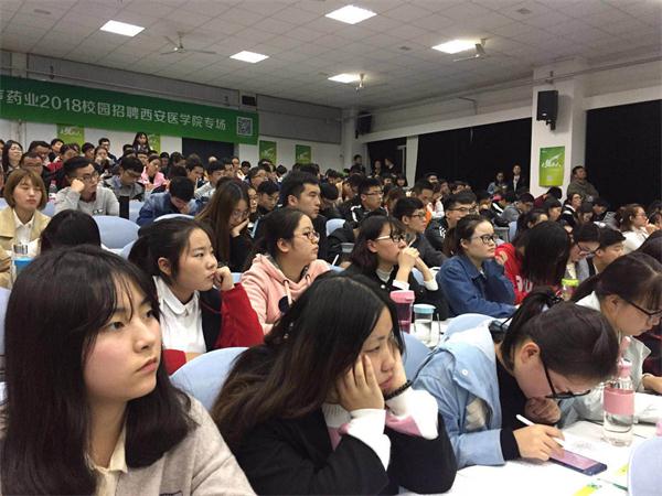我院与江苏先声药业均对此次宣讲招聘工作十分重视,与会的主要领导有药学院院长秦蓓、药学院党总支副书记吕忠田、先声药业副总裁钱海波、营销三部陕西大区经理冉菊花、营销四部大区经理张伟国、陕西一区地区经理苏银燕、陕西二区地区经理郭燕和人力资源部总监王静等。本次宣讲会得到了同学们的热烈响应,现场座无虚席。