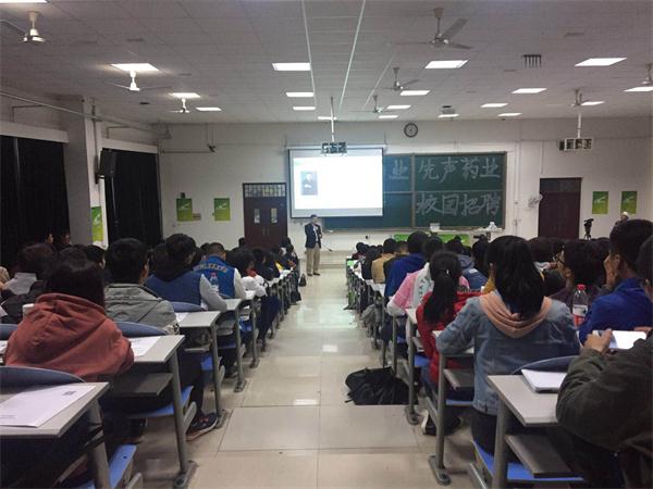 2017年10月11日晚,在教学楼第二阶梯教室,药学院举办了江苏先声药业2018届毕业生校园招聘宣讲会。