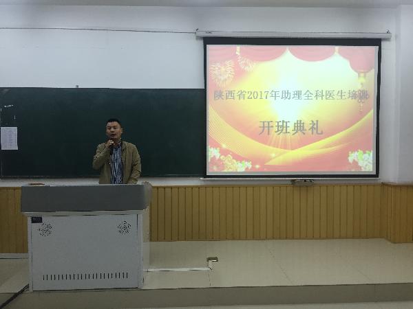 首先,省卫计委科教处文动老师从国家和陕西省各项政策文件等方面介绍了该培训项目以及其重要意义。同时对我校继续教育学院长期以来的各项培训工作给予了高度的评价和肯定。他要求学员们要严格遵守学校的各项规章制度,顺利完成本期培训。也希望学员们做好自己的职业生涯规划,学校要有重点的、有针对性的安排好教学、后勤保障和各项服务工作,做好实训基地的各项安排工作。