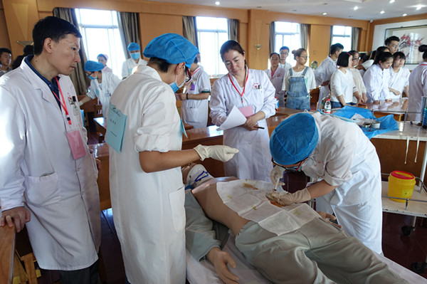 为了落实我校2017年大学生临床技能大赛的相关要求,加强医学生基本技能和临床思维能力的培养,提高参赛选手理论水平、实践能力和团队合作意识,选拔优秀选手参加校级2017年临床技能大赛。9月21日附属宝鸡医院举办了校级临床技能比赛选拔赛。附属宝鸡医院领导,各培训组老师,见习生、实习生、志愿者等200余人参加、观摩了比赛。