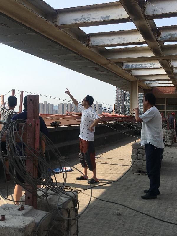 为加快施工进度、保证施工质量,黄保强副院长多次深入施工现场视察施工进度情况,他要求施工一线项目管理人员和施工人员要及时掌握、解决现场问题,不拖延、不推诿,全力以赴保质量、抓进度。他还强调高温炎热天气,工人师傅们能坚守岗位本身就是一种奉献,所以更要组织抓好安全生产,要严格按照国家规定在高温天气下的安全生产制度,合理安排好工作时间,做好一线施工工人的防暑降温工作。