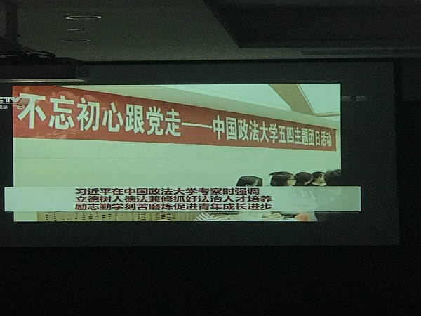 让大家都可以参与其中。在说到如何做一名合格共青团员的时候,杨老师举例医技系的两位同学在地铁站救人的事迹,鼓励我们要培养当代大学生的社会责任感,要有敢于担当的意识,并指出团的工作任务就是在思想上引领团员青年成长成才,树立正确的人生观、价值观、世界观和培育良好的社会主义核心价值观!最后杨娜老师与我们共同观看了习近平总书记今年五·四青年节视察中国政法大学时的视频,大家感触颇深。