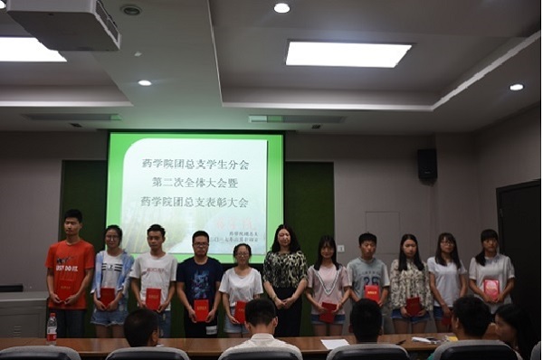 (药学院)2017年6月14日中午,药学院团总支在药学院学术报告厅召开了先进表彰大会。出席本次活动的领导有药学院党总支副书记吕忠田、药学院团总支书记杨娜老师。
