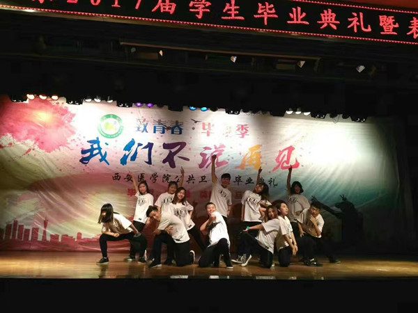 接下来的文艺汇演由我校JFD街舞社表演的现代舞《Hello Dance》拉开帷幕,爱琴海口琴社表演的口琴曲《仰望星空》表达了同学们对于梦想的执着追求与坚持。由歌手大赛十强选手表演的歌曲串烧将现场气氛一次次推向了高潮,赢得了全场老师同学的热烈掌声与喝彩。相声、朗诵等充满阳光与活力的节目表演,深深地感染了在场的观众,台下欢呼声、喝彩声不断。快乐的时光总是很短暂。将近三个小时的毕业典礼文艺汇演,在热烈、欢快、难舍的气氛中落幕。