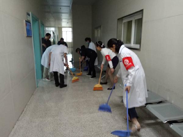 附属宝鸡医院机关二支部义务清扫漏水
