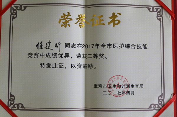 附属宝鸡医院任建昕医生获得全市医护综合技能竞赛二等奖
