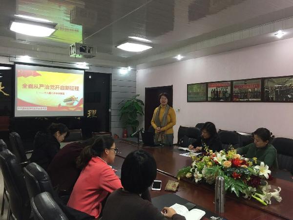 (护理学院)12月19日下午,护理学院党总支开展了“两学一做”专题党课教育,邀请学校十八届六中全会精神宣讲团成员、校学工部部长靳红樱作了题为“全面从严治党,开启新征程”的专题报告,对十八届六中全会精神进行了全面解读。护理学院全体教师党员参加了本次学习,大会由护理学院党总支书记景红军主持。