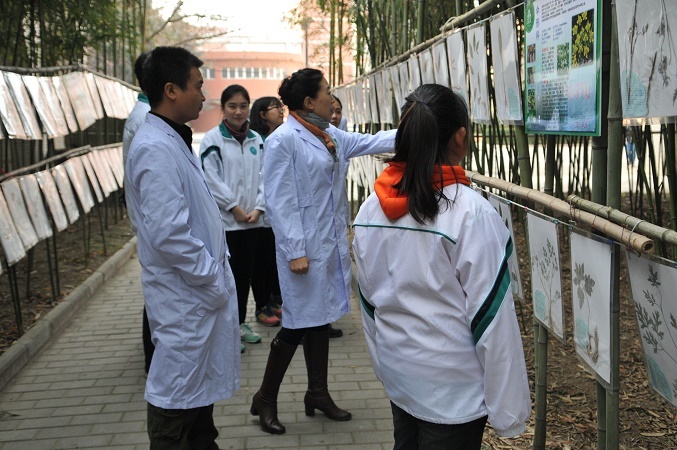 当中药本14级的同学们把精心制作不同种类的药用植物标本整齐的悬挂在竹林小径两侧时,即刻引来了不少同学的驻足观看。在现场观看的同学们还不时提出一些关于药用植物的功效、产地等许多相关问题,毫不掩饰他们对所展出标本的喜爱及。对于观看的同学提出的专业问题,在现场的生药教研室的老师们均为大家一一耐心解答。参观的同学们纷纷表示,在标本展上学到了不少的植物知识,特别是对于常见的很多种植物,现在不但知道了它们的名字,还知道了这些看似普通的小草,也有很好的药用价值。