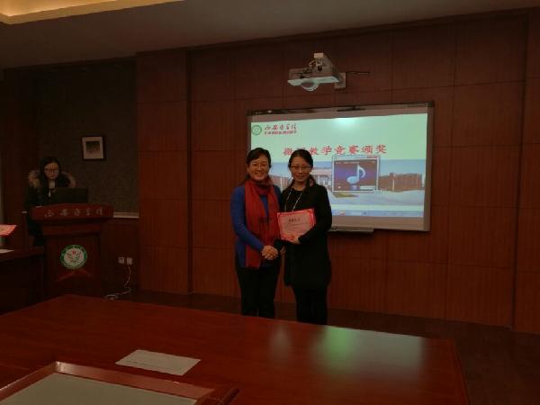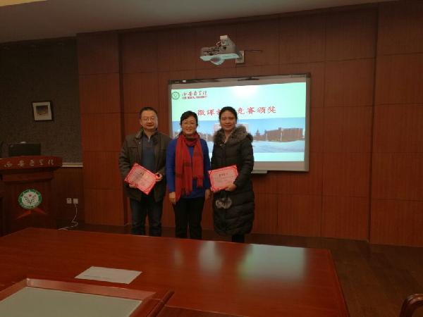 首先,桑利娥主任对期中教学检查的情况作了总结,指出部门在校领导、校督导听课和质量监控小组及同行听课等各个环节都较好地完成了任务,从座谈会反馈的情况来看,学生对老师们的授课比较满意。同时也指出了一些存在的问题和不足,例如:集体备课比较成功,但仍有提高的空间;对青年教师的培养仍需加强,导师应时刻关注,多指导;青年教师应不断提高自身能力,在备课和讲课上多下功夫。之后,桑主任对微课比赛的情况作了简要说明,熊冬梅副书记为王进等11名获奖教师颁发了荣誉证书并鼓励他们再接再厉。