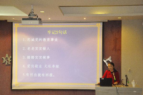 荆亚茹教授围绕理想信念、敬业态度、操守德行、学问修养、业务能力诸方面进行了讲解,深刻理解高等教育办学的新理念:暨“教学决定生存,科研决定水平,服务决定地位,质量决定兴衰,制度决定成败”。