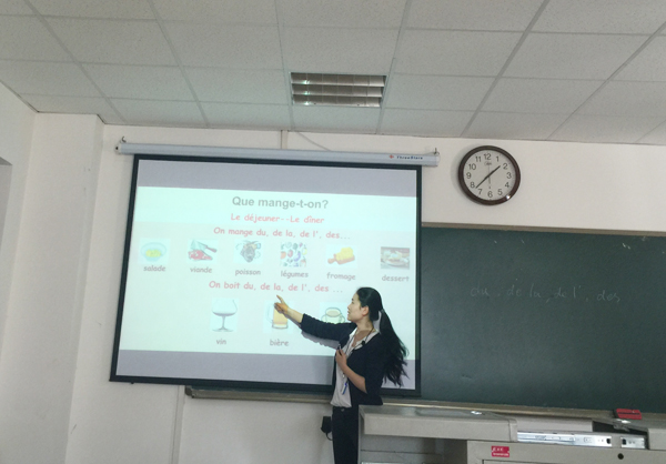 首先,四名青年教师依次上台向大家汇报展示她们的教学过程。她们落落大方的教态、流利优美的语调、用心设计的PPT,新颖的教学理念,完整的教学过程,激情的讲解博得了大家的一致好评。四个人虽然课程不同,但各有亮点,特色鲜明。比如卢杨夏蒙老师以名人名言导入教学,环环相扣,重点突出;李欣老师平和亲切的教态,把悦耳的法语习练带到生活中,克服了初学者学习二外的畏惧情绪,非常接地气;李美老师娴熟的语言驾驭能力,清晰的思路,深度的讲解,达到了提升学生写作技能的效果;康芬老师则非常用心,把我们身边的热点新闻、学校各系部的志愿者活动搜集起来,制作成PPT内容,使课本内容和身边的生活发生关联,既培养了学生学习语言的兴趣,又增强了学生对西医的归属感和自豪感。总之,把语言教学和专业教学相结合,把课本知识与现实生活对接,把中西方文化进行融合对比,他们向大家展示了新一代年青教师不断成长的风采,也领略了教师队伍建设的成效。