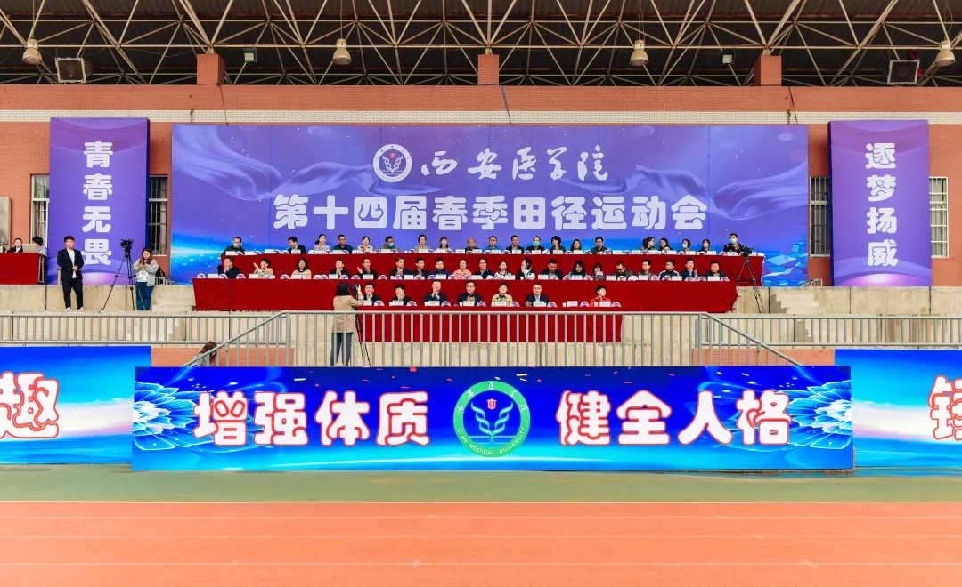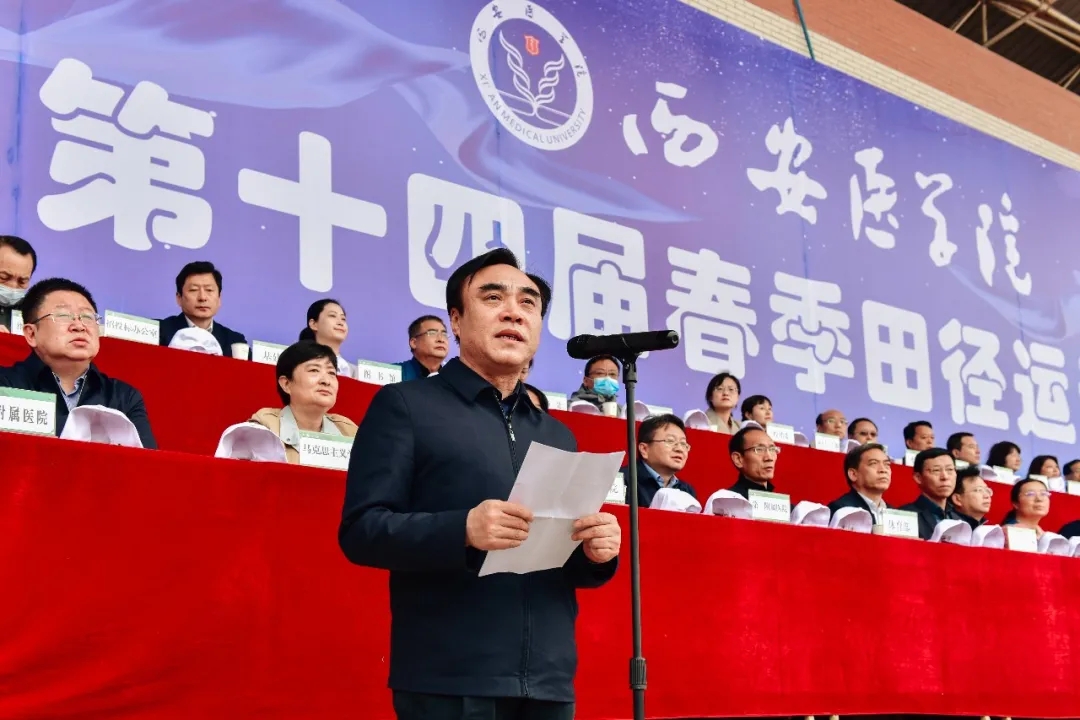4月22至23日,我校在未央校区体育场成功举办第十四届春季田径运动会。全体校领导及各学院(部)、相关职能部门、各附属医院的主要负责人出席22日的开幕式。开幕式由副校长黄保强主持。