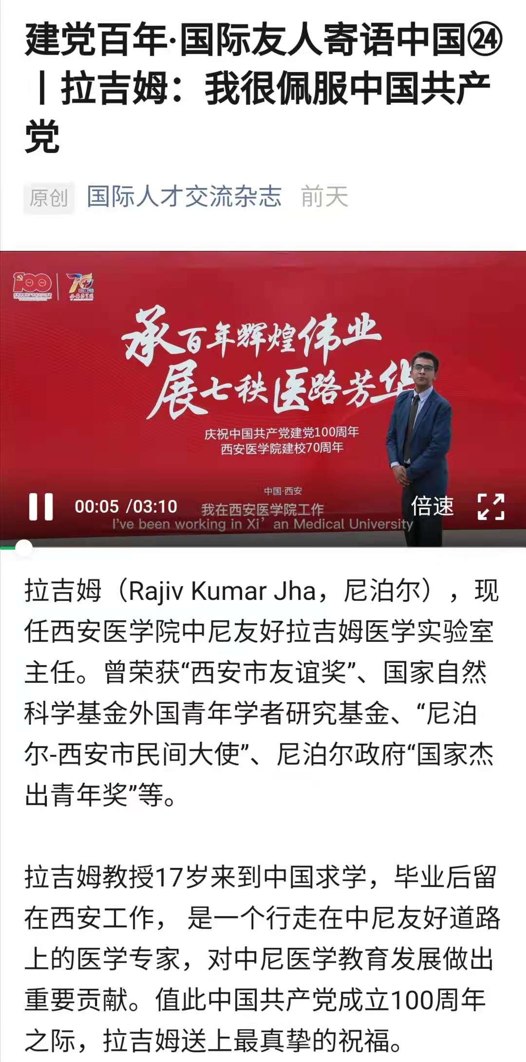 建党百年·国际友人寄语中国㉔丨拉吉姆:我很佩服中国共产党