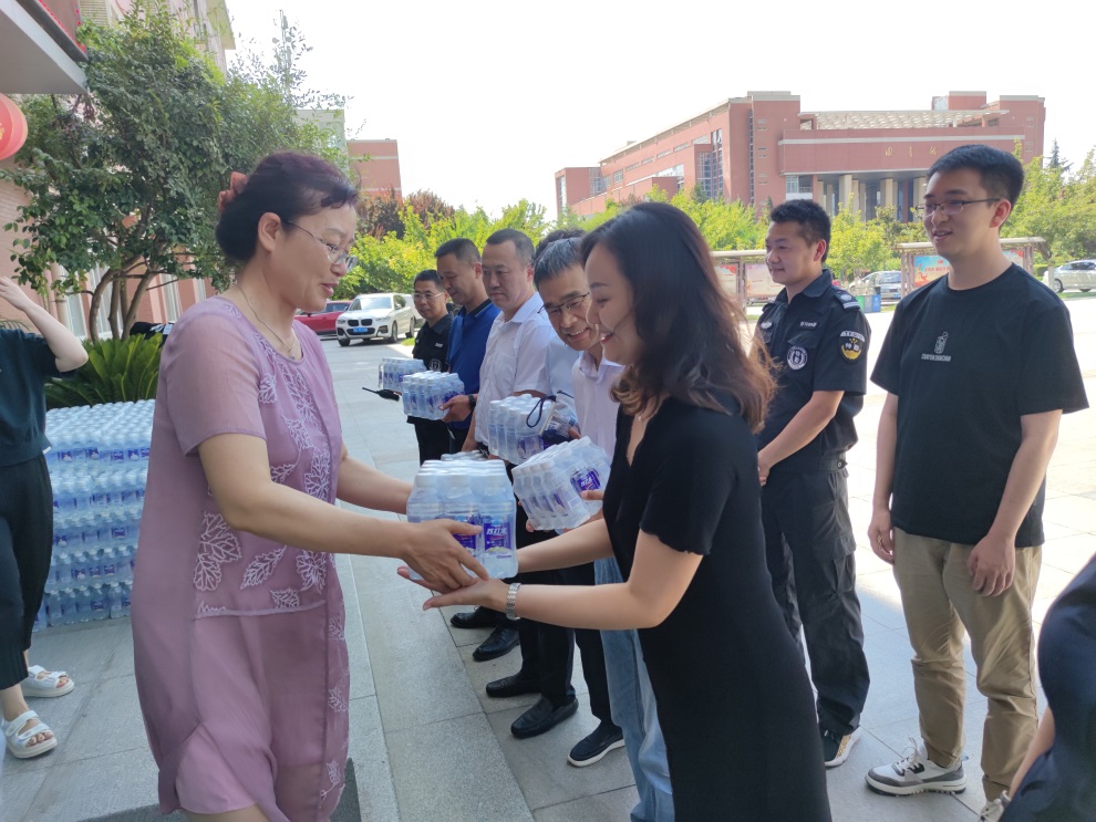 炎炎夏日送清凉,丝丝关爱润人心。为充分体现学校党政及工会组织对广大一线教职工的关心与关爱,7月14日,校工会开展了“送清凉”慰问活动。党委副书记熊冬梅带领工会干部为招生与就业工作处、保卫处、后勤保障处、基建处、含光校区管理处、高新校区管理处、校医院等部门,送去了苏打水等防暑降温物品,并对他们放弃暑假休息时间,依然坚守岗位,保证学校有序运转,积极推动学校事业发展的作为表达了谢意,并叮嘱坚守岗位的工作人员,要强化安全意识,做好防暑工作,合理安排作业时间和劳动强度,确保身体安康。