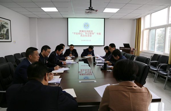 按照学校“不忘初心、牢记使命”主题教育工作安排,12月12日上午,附属宝鸡医院组织召开了“不忘初心、牢记使命”专题民主生活会。校党委委员、副院长黄保强,主题教育第三巡回指导组组长刘睿、成员杨欣雨全程指导了此次民主生活会,院党委班子全体成员参加了会议。会议由附属宝鸡医院党委书记王光明主持。