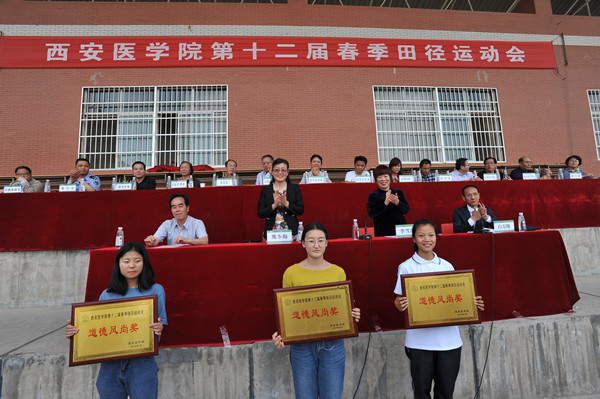 经过两天的激烈比赛,运动会于4月21日下午顺利闭幕。党委副书记熊冬梅和副院长李雪萍出席闭幕仪式。闭幕仪式由校工会副主席白万晓主持。颁奖仪式中,护理学院获得团体总分第一名、女子团体总分第一名,临床医学院获得总分第二名、男子团体总分第一名,药学院获得总分第三名。公共卫生系、医学技术系、全科医学院分别获得优秀组织奖;卫生管理系、英语系、口腔医学系分别获得道德风尚奖。