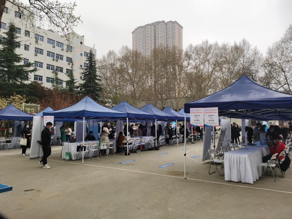 为做好疫情防控工作,本次招聘活动分为图书馆和篮球场两个场地,扩大了招聘活动空间,并采取展位间隔、活动现场限制人流量、面试学生间隔安全距离等措施,确保招聘活动现场安全可控。此外,参会期间要求学生和单位人员入场需提供健康码及测量体温,并严格登记。