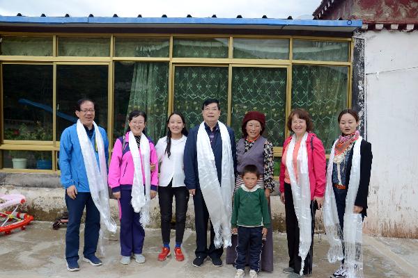 2019年暑期,党委书记范兵、副书记熊冬梅带领学工人员前往雪域高原,看望藏族学生,实行精准帮扶。道路险阻,高寒缺氧,一路上家访组要克服自然环境困难,还要不断面对生理与心理挑战,但这也加深了家访组对藏区学生的担心与牵挂。23日上午,家访组前往墨竹县唐加乡莫冲村顿珠旺姆家,村口偶遇村支书歌曲书记,在她引导下我们很快来到了这个12口之家。“扎西德勒”,孩子父母不懂汉语,但热情、激动溢于言表。范兵书记表明来意,询问了家里情况,告知家长孩子在校学习情况,并听取家长对学校的意见和建议,随后递上了慰问金。接下来的家访路上,每到一名学生家里,范兵书记都耐心向学生家长介绍学校近年的发展情况,并结合受访学生在校的学习、生活情况和家长们进行深入交流,详细说明国家及学校相关资助政策和措施,鼓励学生要树立信心、勤奋学习、磨炼意志、早日成才;认真听取家长对学校各方面发展的意见和建议。同时,范兵书记向学生家庭和社区传达了党和国家的利民政策,要坚决维护民族团结,鼓励家长适当学习汉语,多了解党和国家的方针政策,要把精力集中在经济建设和孩子教育上,勤劳致富奔小康。