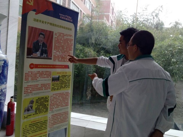 2016年5月18日下午,药学院学生党支部组织学生党员在药学院大厅参观学习了由学校纪委制作的《中国共产党廉洁自律准则》、《中国共产党纪律处分条例》和《习近平关于严明党的纪律和规矩论述》的宣传教育展览展板,宣传展览图文并茂,易于理解和执行,通过参观学习,使学生党员牢记要以党纪党规严格要求自己,以党员的先进性带动身边的同学,更好地发挥党员先锋模范带头作用。