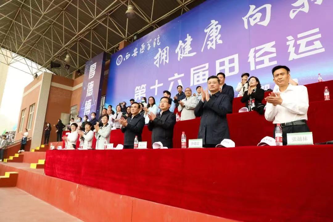 熊冬梅致词表示,在这美好的时节里,迎来了令人期待的第十六届田径运动会。代表学校党政对本次运动会的顺利举行表示热烈祝贺!学校贯彻落实党的教育方针政策,树立“大健康、大卫生、大体育”理念,坚持五育并举,不断深化体医融合教学改革,为高素质应用型医药人才培养奠定体质基础和时代素养。健全的人格、健康的体格不仅是广大青年学生的自觉追求,更是新发展阶段的客观要求。她希望西医每位学子全面发展,无论在教室里、运动场上、还是未来事业中,都能勇攀高峰。