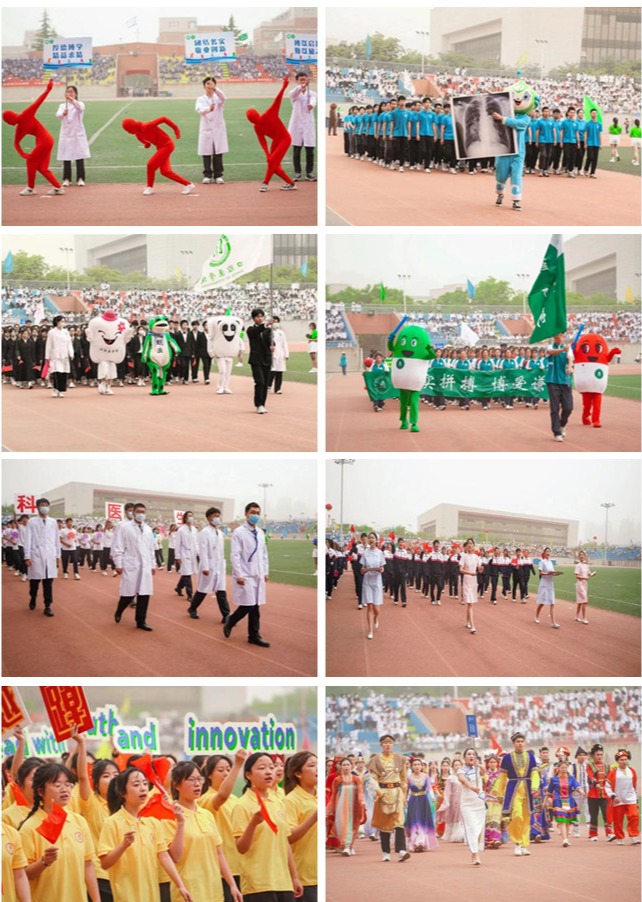 随后,杨帆宣布运动会开幕。百余名学生表演《医心向扇》《青春追梦人》,在武术、舞狮、扇舞中尽显传统文化魅力,用飞扬的青春跳出对未来的美好向往,用精心编排的队形和舞蹈为祖国点赞喝彩。运动会比赛分为教职工组和学生组,共计1800余名师生参加。个人项目中运动健儿们你追我赶、奋勇争先,团队竞赛中伙伴们团结协作、相互扶持,年轻的西医学子顽强拼搏、追求卓越,用最饱满的热情践行青春理想。