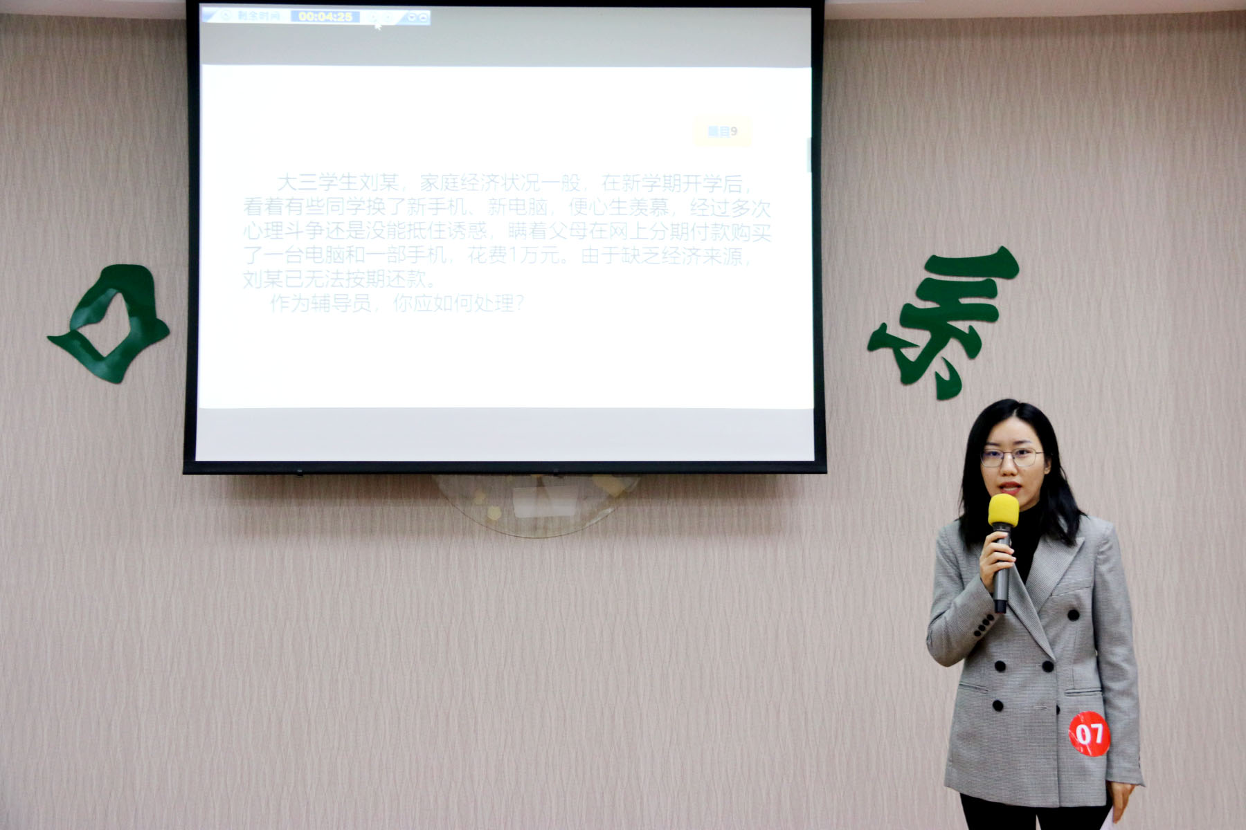 本次大赛预赛区别于以往的大赛,大赛呈现出三个特点,一是全员全程参与。从笔试到理论宣讲,所有选手完整参加整个比赛;二是组织准备充分。学工部从暑期开始,经过了4个多月的准备,编制3套辅导员培训学习资料,组织辅导员进行了三次集体培训;三是注重理论与实际工作结合。大赛聚焦聚力学生关心问题及学生日常教育管理的困点、难点、堵点,比赛案例囊括心理危机、学生管理、学生就业、思政教育、民族生管理、网络舆情应对和突发事件处理等方面。大赛达到了以赛促训,相互学习、彼此交流、共同进步的目的。