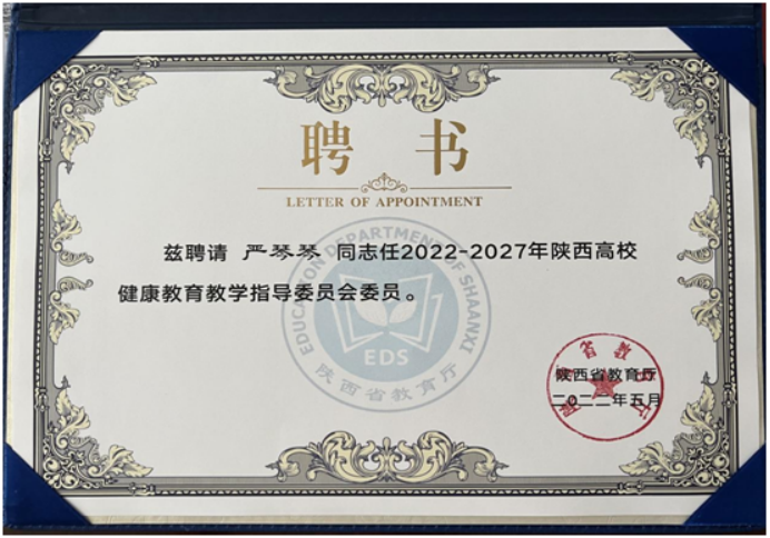 严琴琴教授任陕西高校健康教育教学指导委员会委员