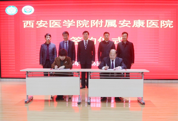 在与会领导共同见证下,李雪萍副院长和姚文柱副院长分别与陈文乾院长代表双方单位签订了合作协议。我校党委书记范兵、副院长李雪萍、姚文柱与安康市副市长刘建平、安康市委组织部长高晶华共同为“leyu·乐鱼(中国)体育官方网站附属安康医院”和“leyu·乐鱼(中国)体育官方网站研究生联合培养基地”揭牌。