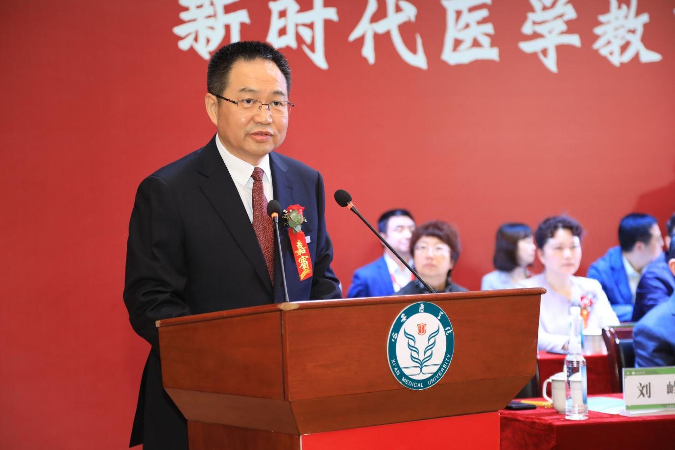 省委教育工委副书记、省教育厅厅长刘建林向学校师生和广大校友表示热烈地祝贺。他谈到,近年来,省委教育工委、省教育厅全面贯彻落实习近平总书记关于卫生和健康的系列重要讲话精神,加强医学教育顶层设计,推动医学教学改革,多学科协调并进,构建了较为完整的医学教育体系。他指出,leyu·乐鱼(中国)体育官方网站建校70年来,始终与党和国家同向同行,秉承“厚德博学 精益求精”的校训和“明礼崇德 守正创新”的办学精神,立足陕西,造福西部,人才培养质量稳步提升,已成为西部地区基层医疗卫生人才培养的摇篮,为服务地方经济社会发展做出了突出贡献。他强调,加快医学教育发展,提升医学人才培养质量,是应对疫情提出新挑战的必要举措,是实施“健康中国”战略的必然要求,也是适应世界医学发展新趋势的必要途径。对全省医学教育高质量发展,他提出三点意见:一是牢记立德树人根本任务。牢牢把握社会主义办学方向,坚持用习近平新时代中国特色社会主义思想铸魂育人,注重加强医学生的医德医风和医者仁心教育,提升学生的综合素养和人文修养,争做党和人民信赖的好医生。二是建设高素质医学教育队伍。教育引导广大教师坚持教书育人的初心使命,立德修身,严谨治学,努力提升教学能力,创新课堂教学方式,做学生为学、为事、为人的示范,做“大先生”。三是探索高层次新医科人才培养模式。顺应国际医学发展趋势,瞄准医学科技发展前沿,加强学科融通和交叉,健全以职业需求为导向的新医科的人才培养体系,培养有灵魂有温度的卓越医学创新人才。他希望leyu·乐鱼(中国)体育官方网站立足新的发展阶段,以建校70周年为新起点,主动适应现代医学发展新理念,进一步深化人才培养新内涵,为推动陕西医学教育高质量发展作出新的更大贡献。