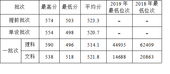 7月9日,提前批次录取结束,最高分574,最低分503,学校迎来“开门红”。7月19日,单设本科批次录取结束,最高分554,最低分498,再次预示了2019年的良好态势。7月22日,陕西一批次正式投档信息发布后,高达496分的理科录取线“一锤定音”,决定了学校2019年招生工作的最终完美结果。