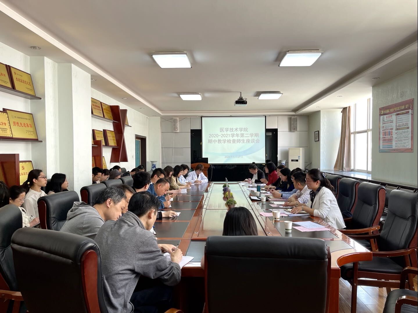 5月17日下午,根据学校关于开展2020-2021学年第二学期期中教学检查工作统一安排,医学技术学院召开了期中教学检查师生代表座谈会。学校检查组成员副校长姚文柱,校级教学督导王兰教授、教务处苏兴利处长、学工部靳红樱部长出席会议;医学技术学院院长孙静,教师、学生代表,各教研室主任、实验中心负责人,教学科、学生科负责人参加了会议。会议由副院长王莉主持。