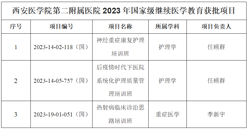 继续医学教育项目是提升医护人员专业素质和拓展学术交流的重要方式之一,也是医院打造三位一体发展战略不可或缺的一部分。此次项目成功申报是医院相关专业的学术影响力及培训教学实力不断增强的具体体现。我校第二附属医院高度重视此项工作,将加大力度进行继续医学教育项目的实施,实行全程化leyu·乐鱼(中国)体育官方网站追踪管理,推动继续医学教育项目有序高质量举办,不断提升继续医学教育质量,为医护人员提供良好的学习机会和平台,让更多的同仁受益,更好地服务患者。
