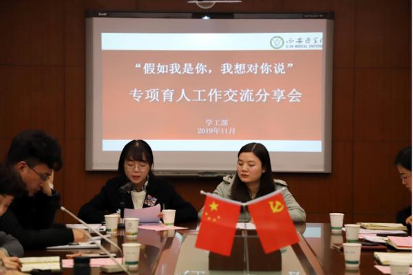 临床医学院党总支副书记吕宝、医学技术学院党总支副书记韩文霞、公共卫生学院党总支副书记张光伟,辅导员代表魏咪、曹卓琳、樊荣、苏鹏以及三位学生代表,就“假如我是你,我想对你说”主题班会活动的举办情况、活动中存在的问题以及活动感受进行了分享和交流。大家一致认为,专项育人活动形式新颖,效果好,学生和辅导员之间有了更深层次的交流,对学生的成长成才有重要作用。各学院在活动后对工作也进行了总结,梳理问题,制定方案,建立育人工作长效机制,为大学生成长保驾护航。